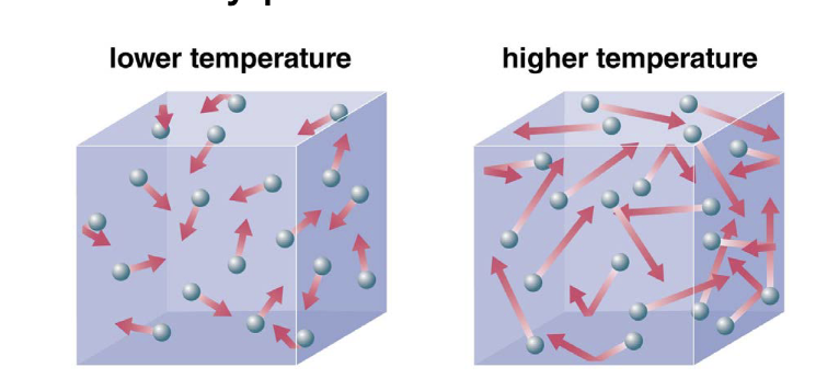 Temperature is the average kinetic energy of the many particles is a substance.