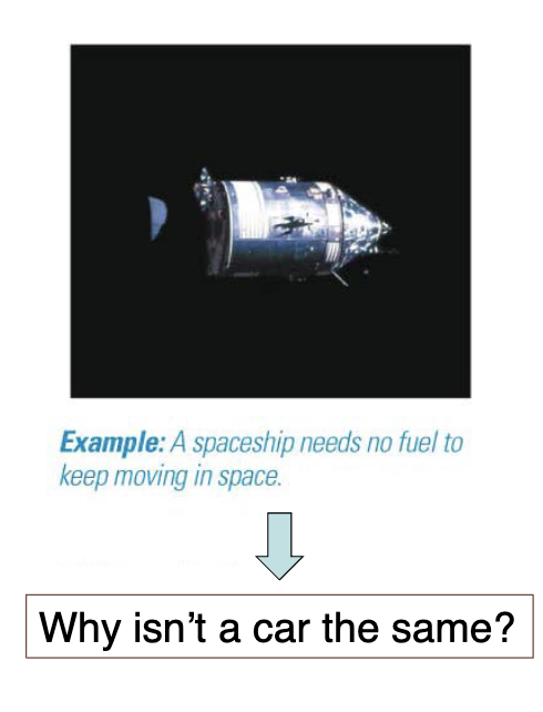 Newton’s first law of motion: An object moves at constant velocity unless a net force acts to change its speed or direction.