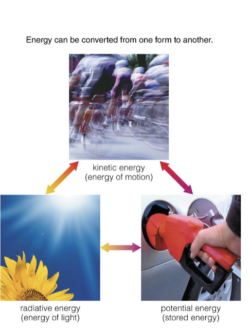 Energy comes in three basic types: kinetic, potential, radiative