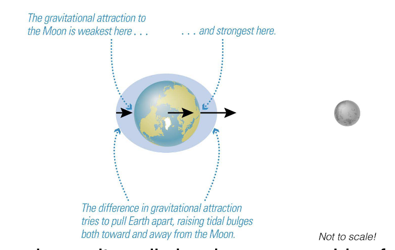 Difference in Moon’s gravitational pull stretches Earth.