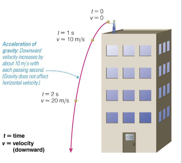 On Earth, g=10 m/s with each second of falling