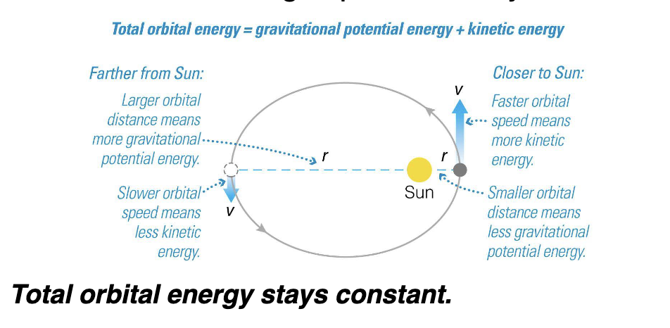 Total orbital energy (gravitational + kinetic) stays constant it there is no external force