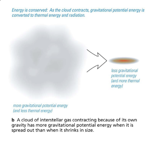A contracting cloud converts gravitational potential energy to thermal energy.