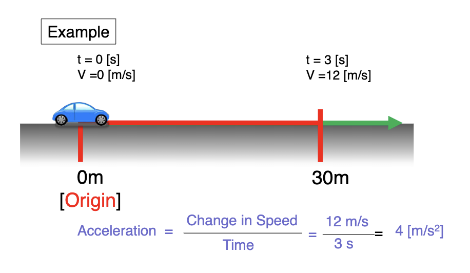 Acceleration: Rate of change in VELOCITY unit of speed/time [m/s²]