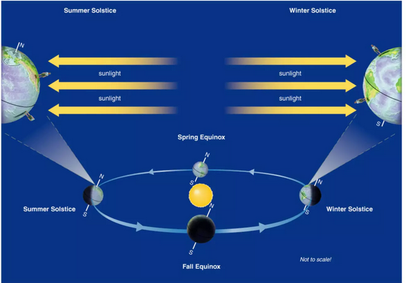 ☼Earth’s axis points in the same direction all year round, which means its orientation relative to the Sun changes as Earth orbits the Sun.
