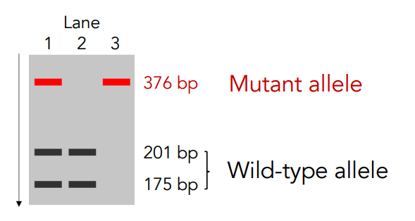 Wild type allele PCR product (dsDNA) is 201 bp.