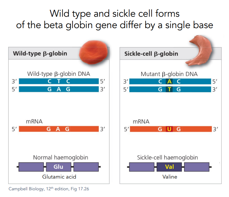 Wild type and sickle cell forms of the beta globin gene differ by a single base.