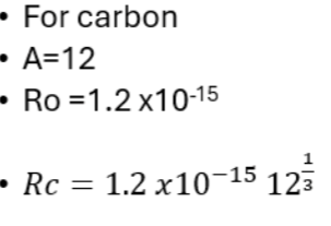The typical size of an atom is used to calculate the nuclear radius (nuclei radii) using R = R0 A^ (1/3). (r0 = is a constant and A= nucleon number) → average radius of a nucleus