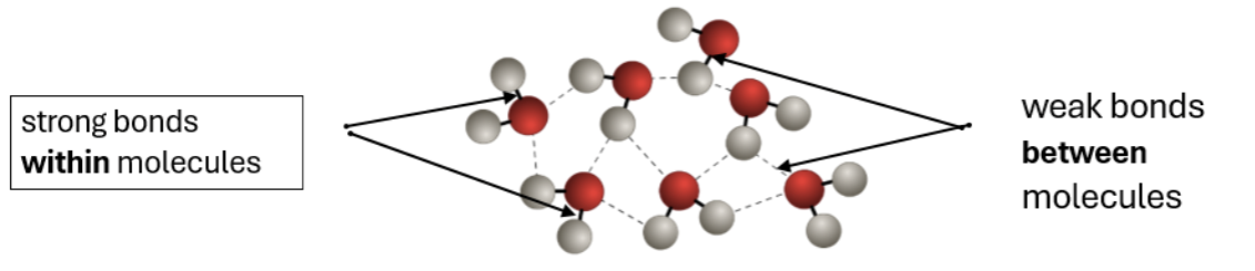 The covalent bonds within molecules are STRONG