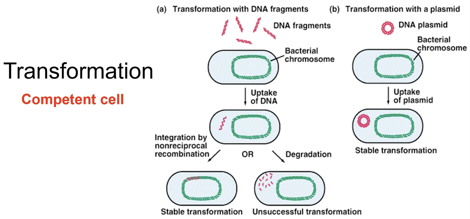 Transformation may be done through DNA, fragments of DNA, or through plasmids