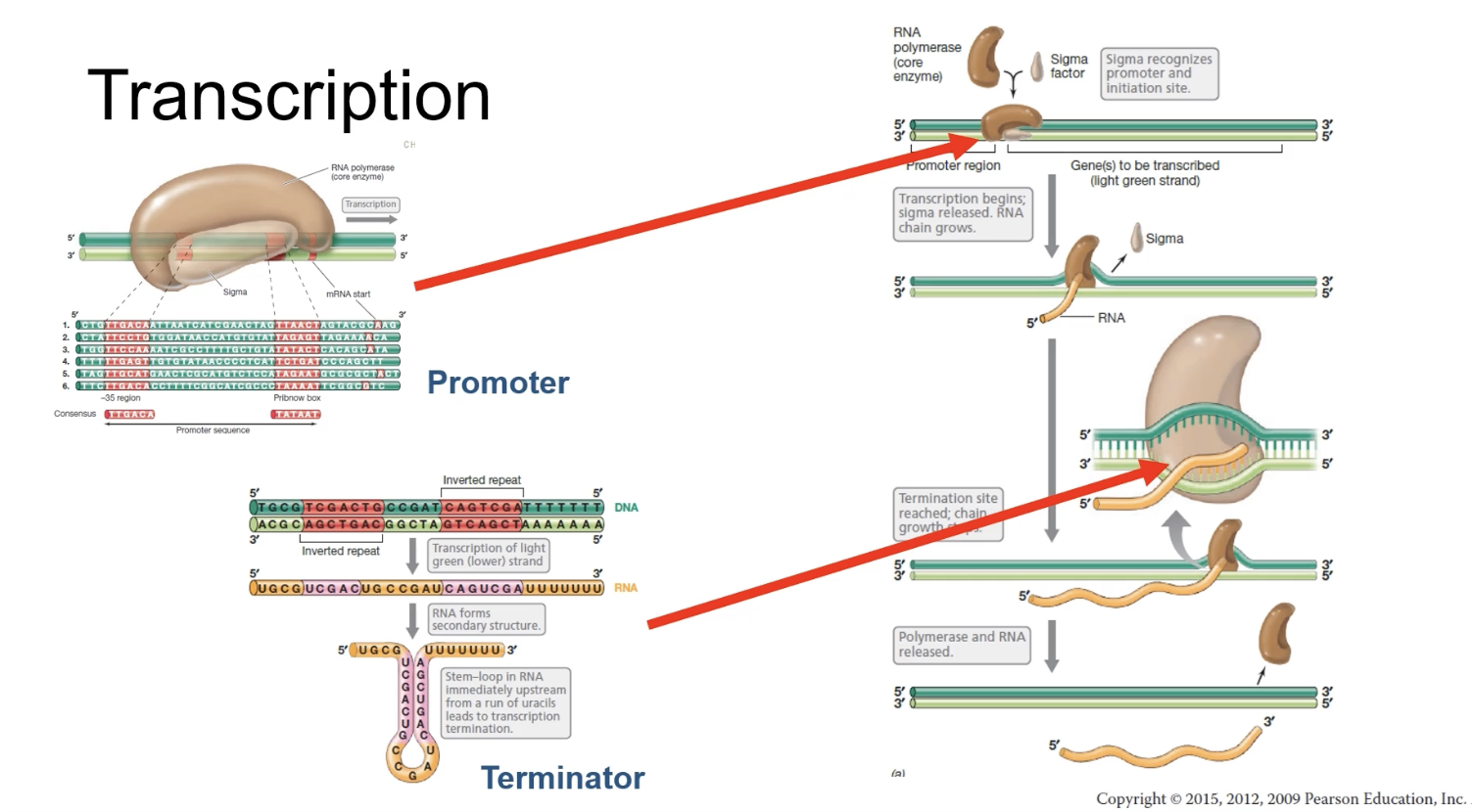 - Terminator marks the end of the transcription