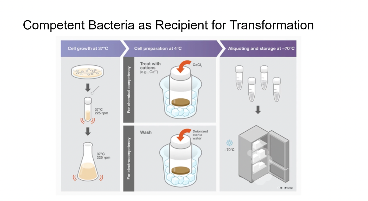 - For chemical competency, the cells will be treated with a calcium chloride solution.