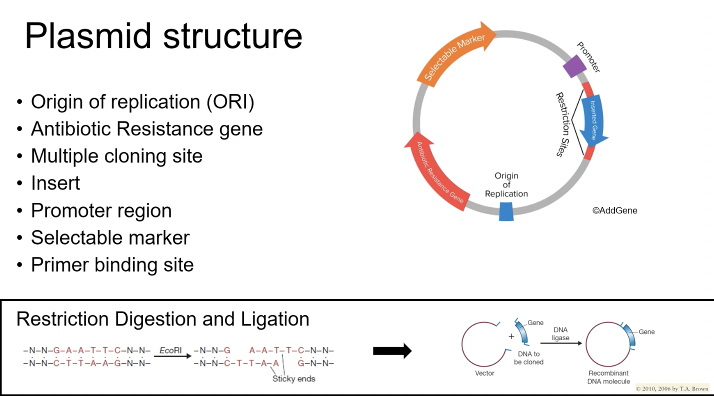 - antibiotic resistance gene allows the selection of plasmid-containing cells