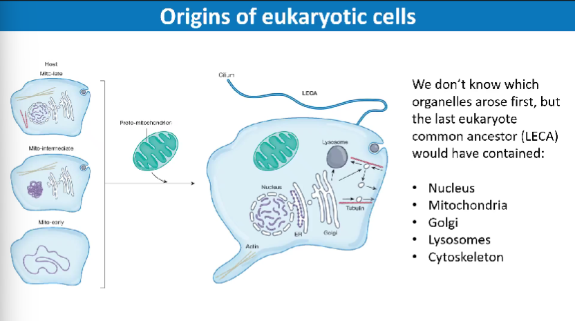 Key terms: LUCA (Last Universal Common Ancestor), endosymbiosis theory explaining the origin of cells.