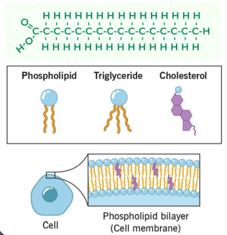 Structure: Generally hydrophobic, some amphiphilic, e.g., phospholipids forming lipid bilayers in water.