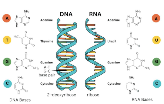DNA base pairing: Adenine (A) with Thymine (T) and Cytosine (C) with Guanine (G).