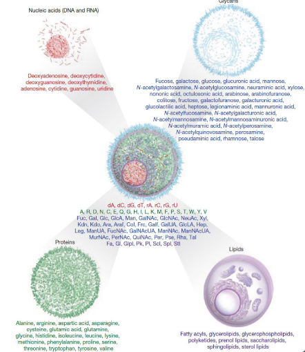 Each group exhibits considerable diversity, e.g., proteins consist of combinations of up to 20 amino acids.