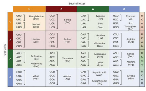 Comprised of codons (triplets of nucleotides) specifying each amino acid.