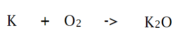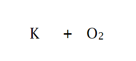 aan linkerkant van de reactiepijl schrijf je de formule van het metaal en die van O2, van elkaar gescheiden door een plusteken