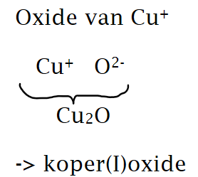 → stocknotatie: FeO → ijzer(II)oxide