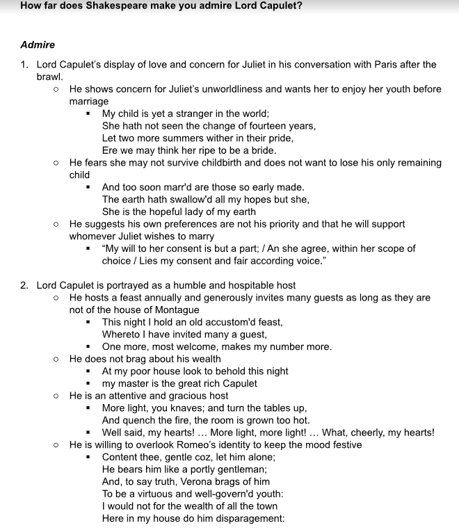 By using these quotes and character analysis points, you can demonstrate a nuanced understanding of Lady Capulet’s role in Romeo and Juliet and her contribution to the play’s tragic outcome.