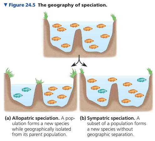 24.2 - Modes of Speciation: Speciation can occur with or without geographic separation (allopatric vs. sympatric).