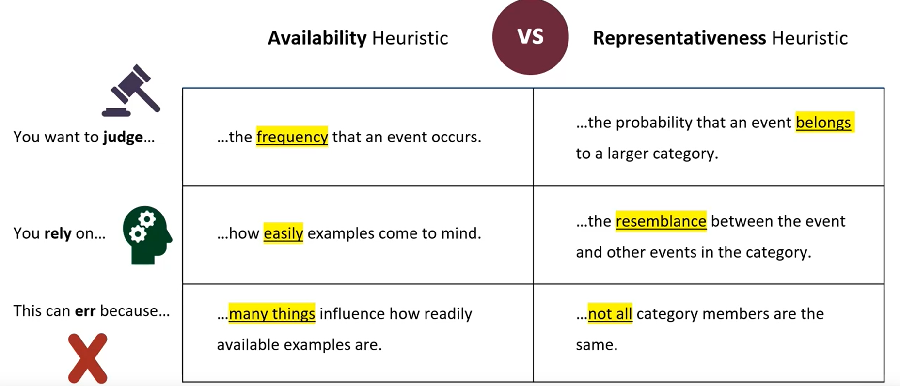 availability heuristic - tendency to make rapid decisions based on the info that is most quickly available to us