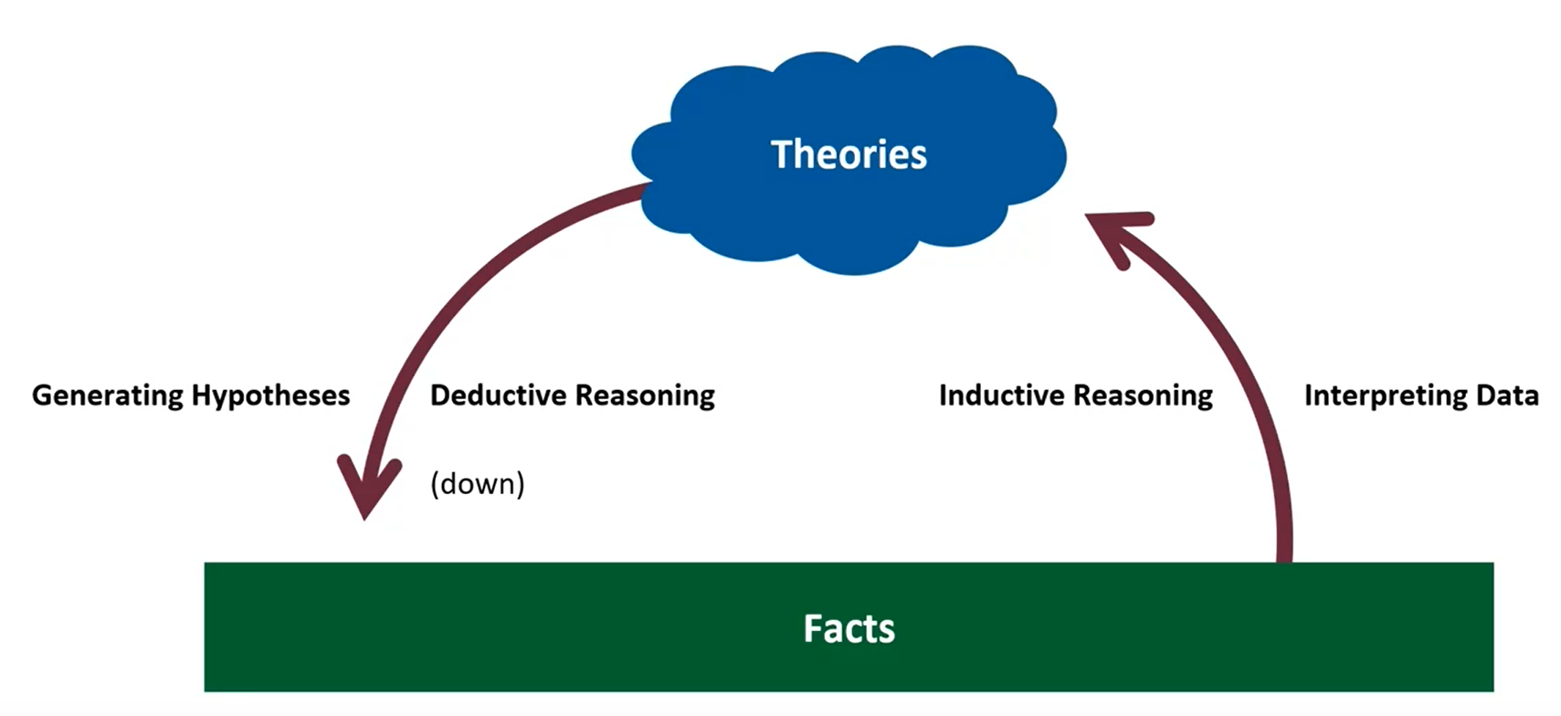 inductive reasoning is when a person starts w specific facts + observations to arrive a broader generalization; interpreting data