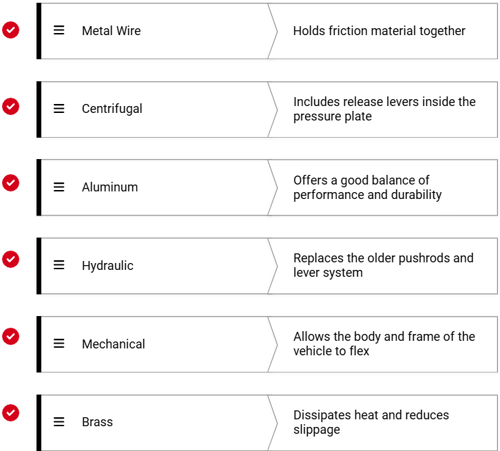 High-performance clutches use metal wire woven through the friction material on the clutch disc.