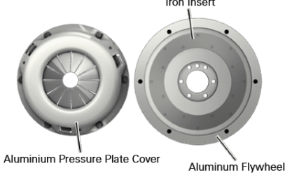 Aluminum flywheels often include iron inserts for the clutch friction material to engage with.