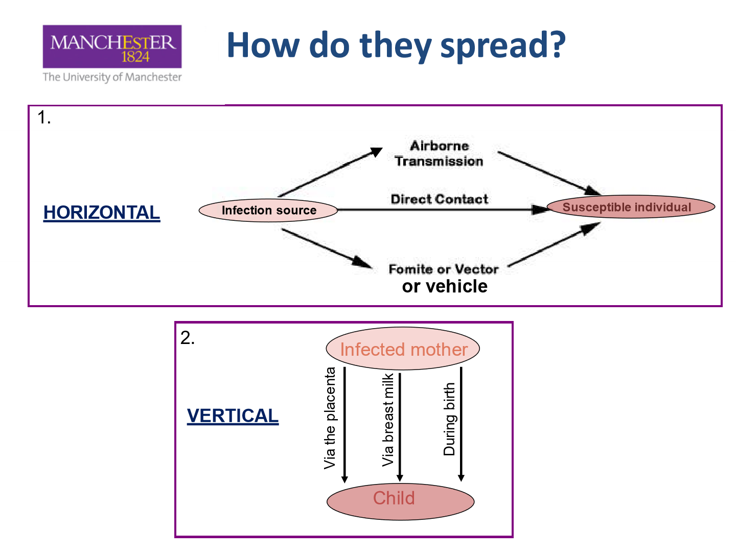 - Vector - blood feeding ( e.g mosquitos)