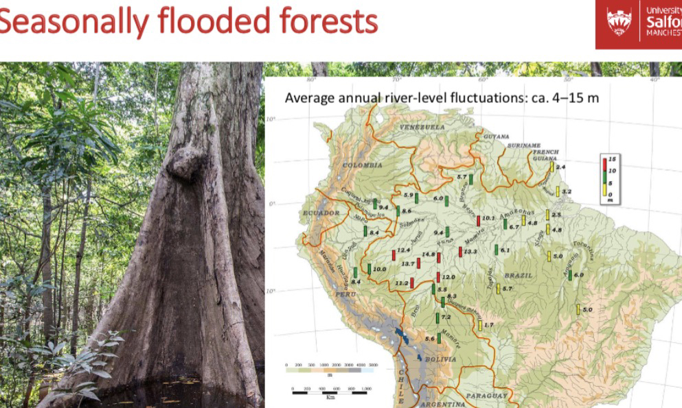 • Formation of the Andes ~15 my ago (collision of Nazca and South American plate) blocked the flow of the river and caused the Amazon to become a vast inland sea, which gradually
