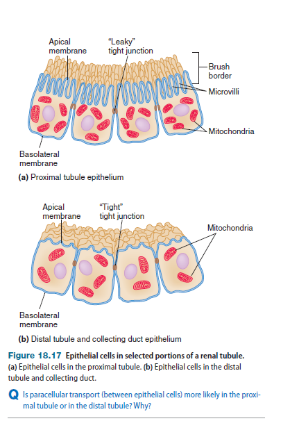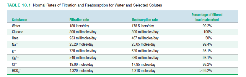 Because the properties of the tubule epithelium vary from region to region along the length of the tubule, both the substances transported and the mechanisms of transport differ in different regions of the tubule (Table 18.2). In the following sections, we look at transport in different regions of the renal tubules.