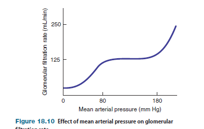 Although variations in mean arterial pressure pose a potential problem, the kidneys can tolerate a change in mean arterial pressure over a fairly wide range (approximately 80–180 mm Hg) with very little change in GFR, because three intrinsic mechanisms regulate the GFR in the face of changes in arterial pressure.