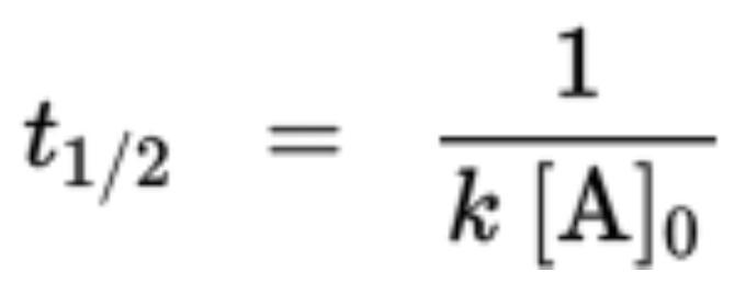 - Half life is t(½) = [A]0 / 2k