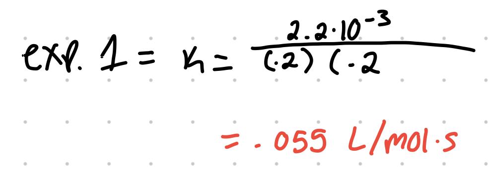 To then find k, use the values from any ONE experiment and solve. any experiment values can be used.