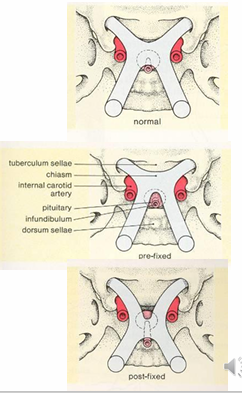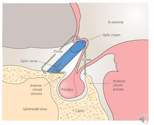 making them vulnerable to pituitary lesions growing upward towards the chiasm.