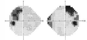 A vague and steadily worsening headache may also accompany these visual field defects.