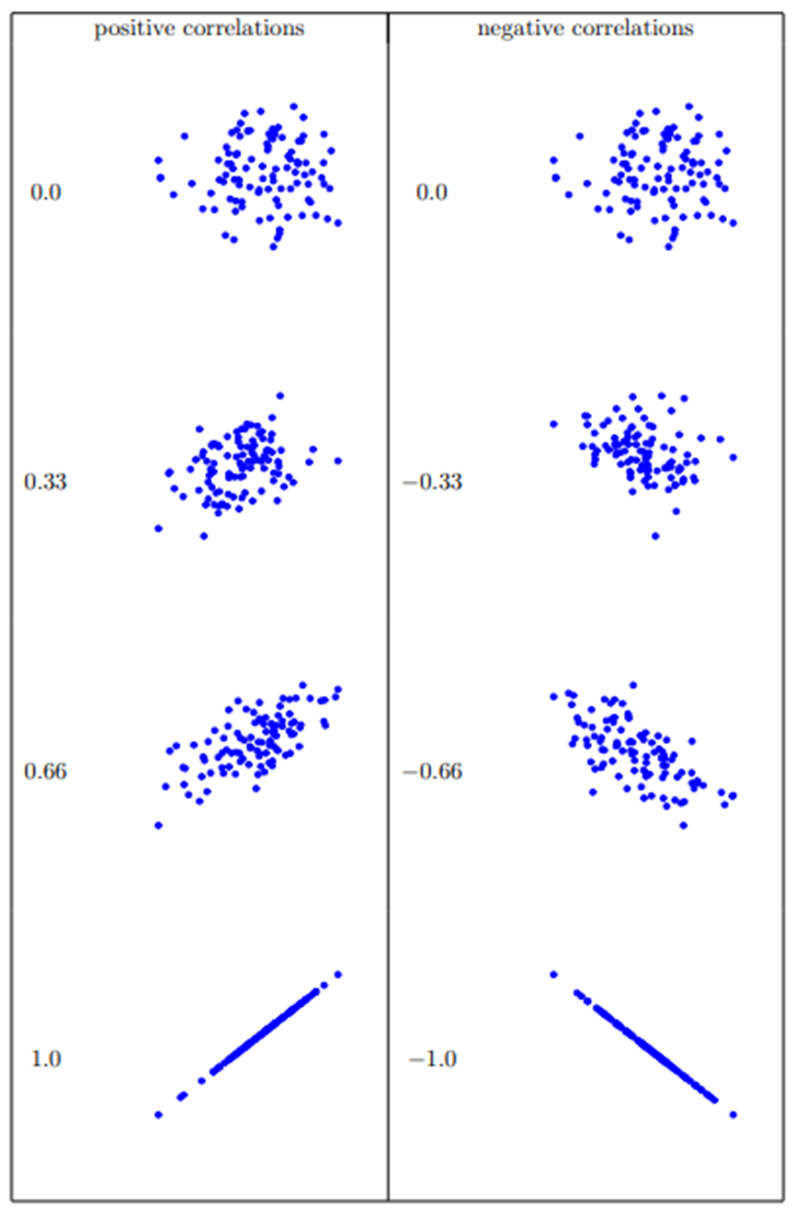 r = 0 indicates no linear relationship; r = +1 indicates a perfect positive linear relationship; r = −1 indicates a perfect negative linear relationship.