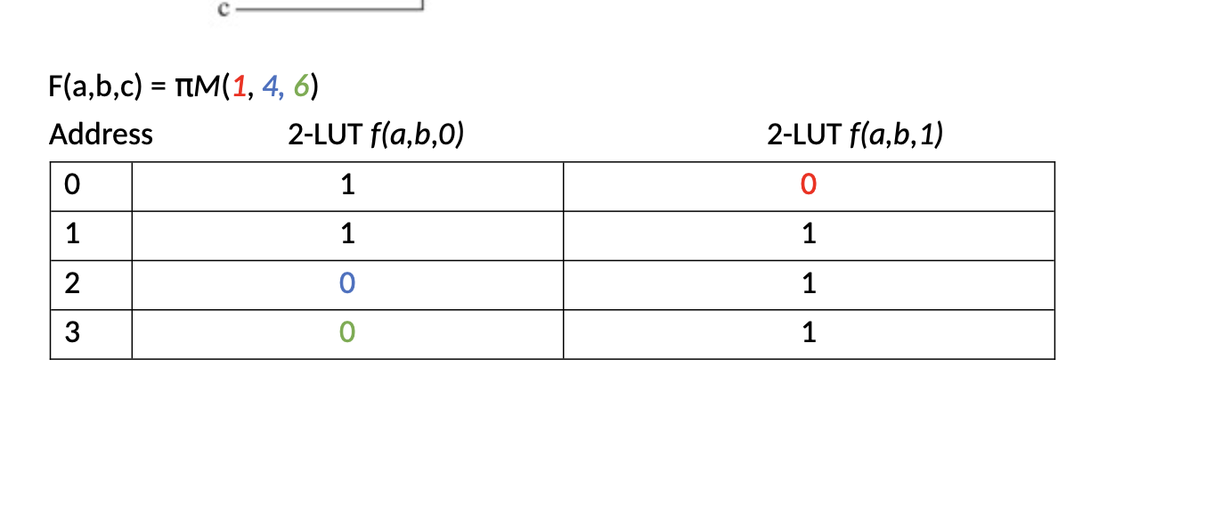 Function: F(a,b,c) = πM(X, Y, Z) where: