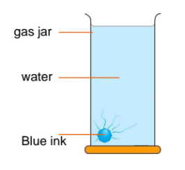 The ink particles move from a higher concentration at the bottom to the lower concentration in other parts of the water randomly.