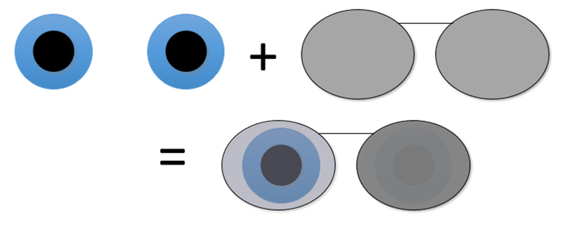 The darker reflection corresponds to the suppressing eye.