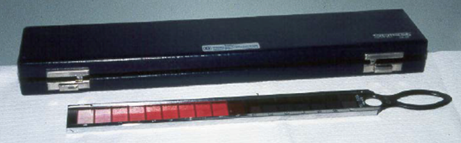 TNO Stereotest: Anaglyphic (uses red and green filters).