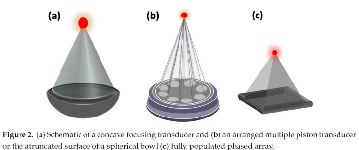 firstly, a piezoelectric US transducer which is used to deliver the therapeutic US beam, most popular is a concave focusing transducer with a fixed aperture and focal length.