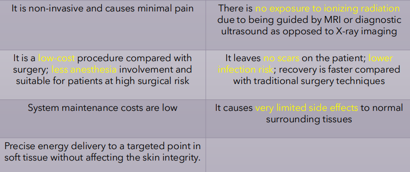 can be used as a non-invasive thermal ablation technique for tumor treatment. (pancreas, liver, kidney, bone, prostate, breast, uterine fibroids, soft-tissue sarcomas).