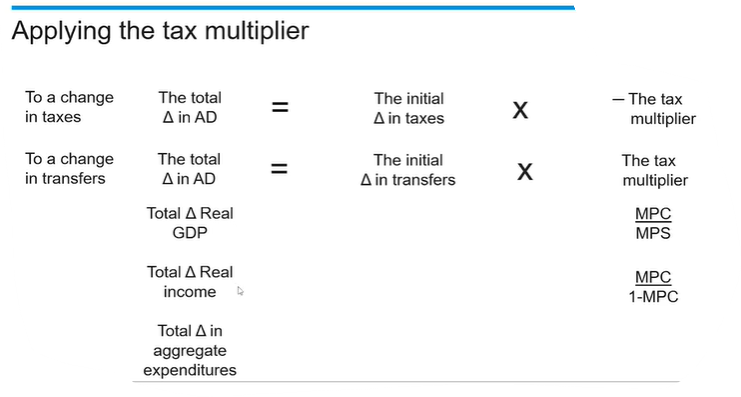 tax multiplier is found by -(MPC / 1 - MPC) = -(MPC / MPS)