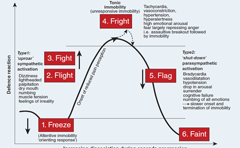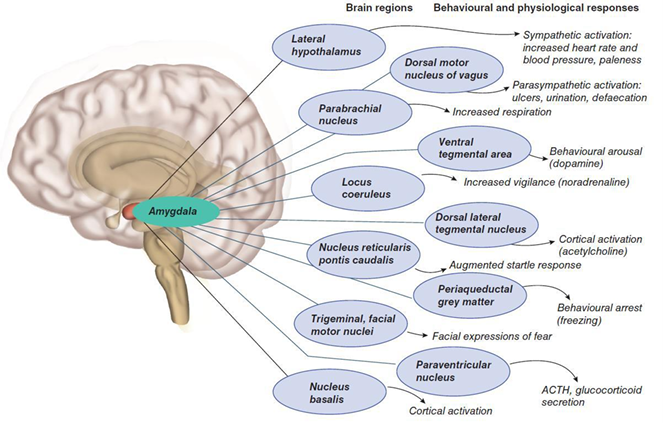 easily startled, hypersensitive to noise → response to threat easily evoked