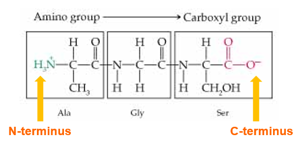 The amino acid sequence is always listed from the N-Terminus of the protein and the 3 letter abbreviation is used for each amino acid. In this case Ala-Gly-Ser.