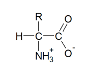 The tertiary structure of a protein is held together by interactions between the side chains - the “R” groups.
