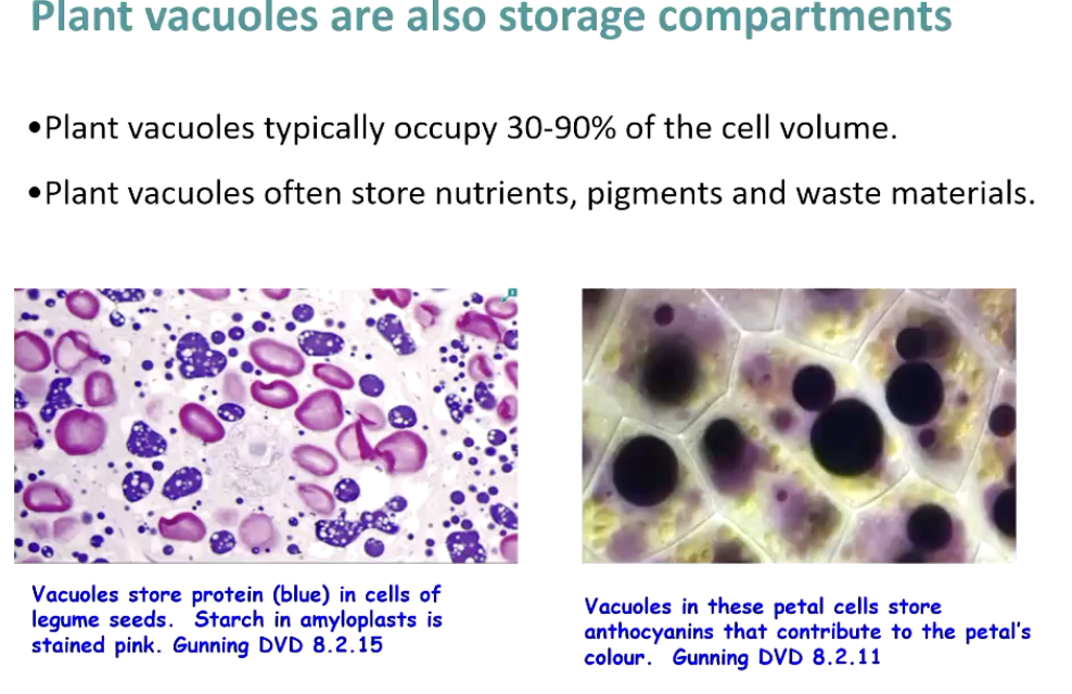 Storage Functions: Vacuoles occupy 30-90% of cell volume, storing nutrients, pigments, and waste materials.